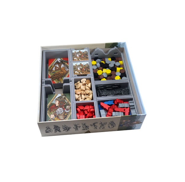 Insert compatible with Raiders of Scythia®. The design provides both efficient storage and improved game play. Many of the trays can be utilised during the game, and they greatly aid set-up and clear-away times.