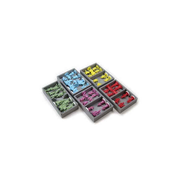 Insert compatible with  Rising Sun®, both the retail and the Kickstarter editions. The design provides both efficient storage and improved game play. Many of the trays can be utilised during the game, and they greatly aid set-up and clear-away times. The rules and boards act as a lid on top of the trays.
