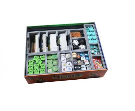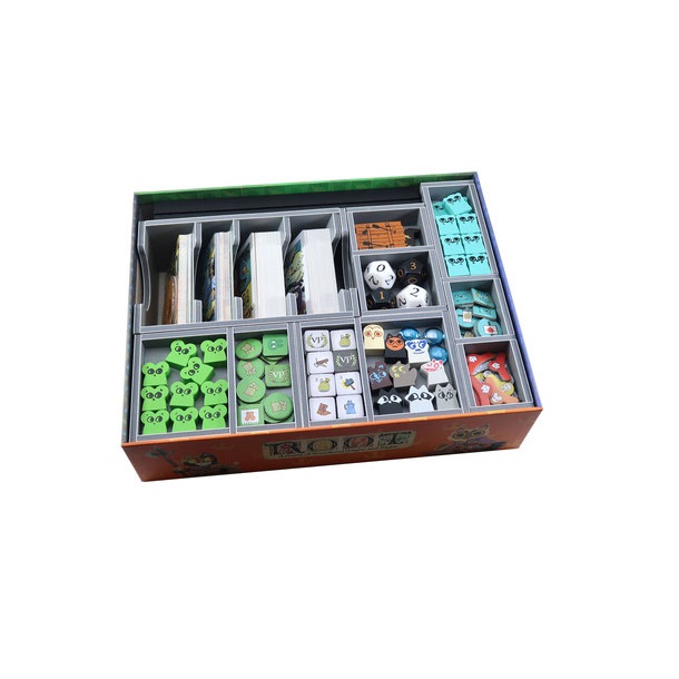 Insert compatible with Root®, and The Riverfolk®, The Underworld®, The Exiles & Partisans Deck®, The Vagabond Pack® and Resin Clearing Markers®.