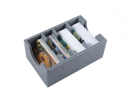 The design provides both efficient storage and improved game play. Many of the trays can be utilised during the game, and they greatly aid set-up and clear-away times. The insert is arranged in three layers.