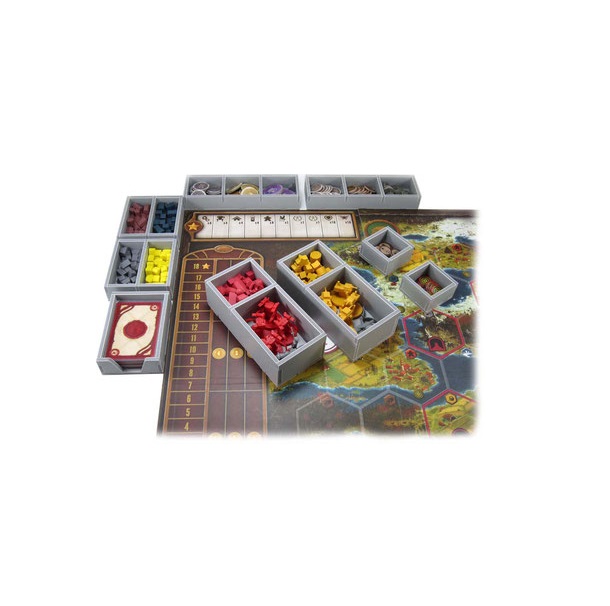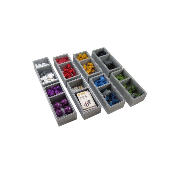 Insert compatible with Scythe®, and the Invaders from Afar® expansion.The design provides both efficient storage and improved game play. Many of the trays can be utilised during the game, and they greatly aid set-up and clear-away times. The rules act as a lid on top of the trays.