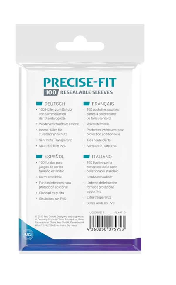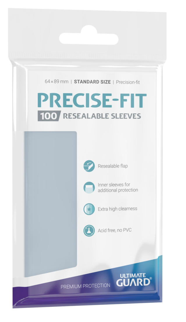 These sleeves fit perfectly into Ultimate Guard Sleeves (sleeve in sleeve). Perfect for Magic: The Gathering™ and many other standard-sized cards. 100 sleeves per pack.