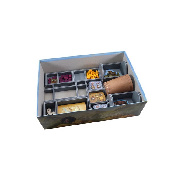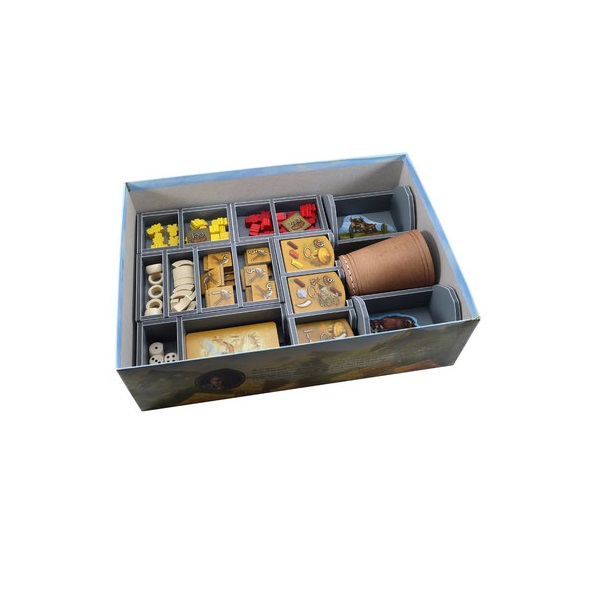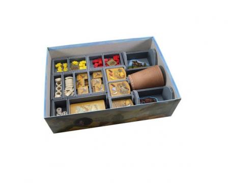 Insert compatible with Stone Age®, including Stone Age: The Expansion® and The Mammoth Herd®. The design provides both efficient storage and improved game play. Many of the trays can be utilised during the game, and they greatly aid set-up and clear-away times. The insert is arranged in up to three layers.