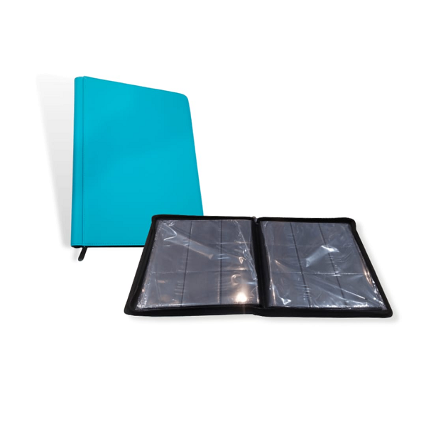 Binder with durable cover, innovative surface and zipper closure for extra security. 20 integrated 18-pocket-pages for all standard and Japanese sized gaming cards.