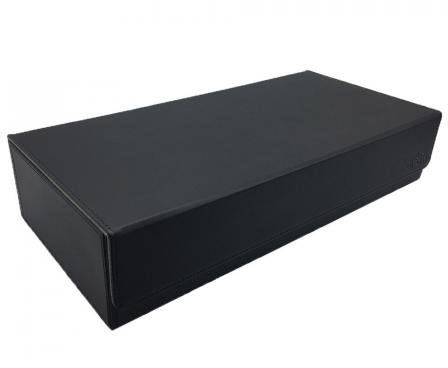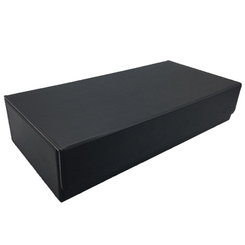 This amazing box can hold for 550+ double-sleeved cards or 650+ single-sleeved cards or 1100+ unsleeved cards etc.