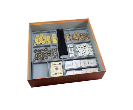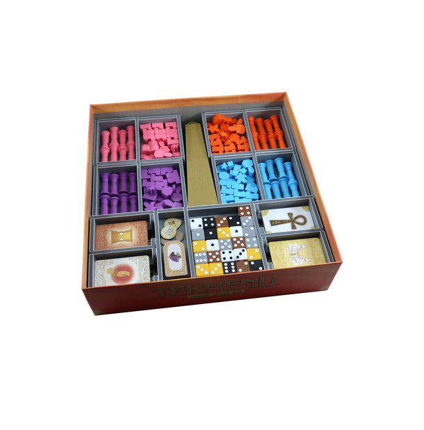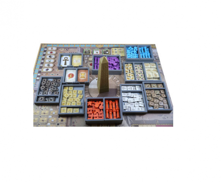 Insert compatible with Tekhenu: Obelisk of the Sun®. The design provides both efficient storage and improved game play. Many of the trays can be utilised during the game, and they greatly aid set-up and clear-away times. The insert is arranged in up to three layers.