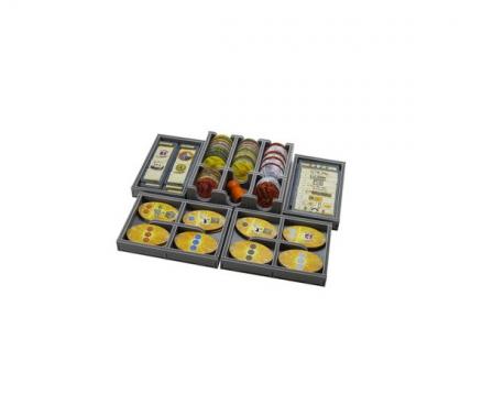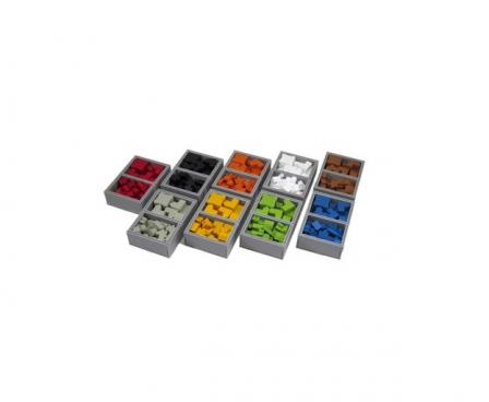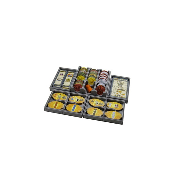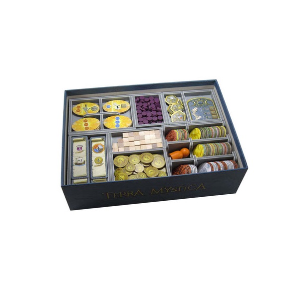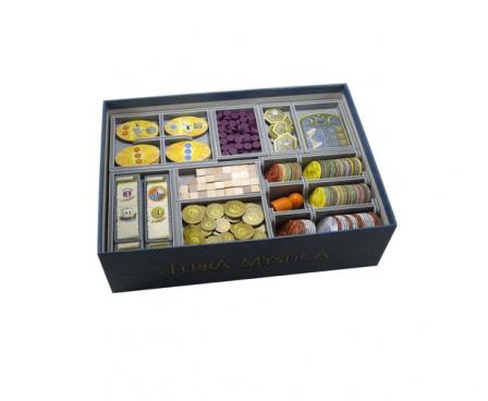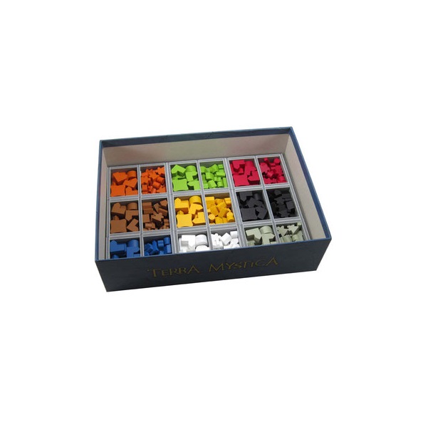 Insert compatible with Terra Mystica®, and the Fire and Ice® expansion. The design provides both efficient storage and improved game play. The trays can be utilised during the game, and they greatly aid set-up and clear-away times.