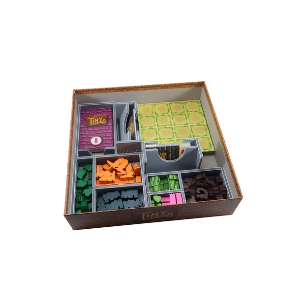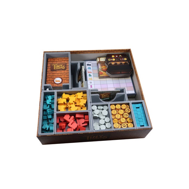 Insert compatible with Tiny Towns®, including Villagers®, Fortune® and Tiny Trees® expansions. The design provides both efficient storage and improved game play. All of the trays can be utilised during the game, and they greatly aid set-up and clear-away times.