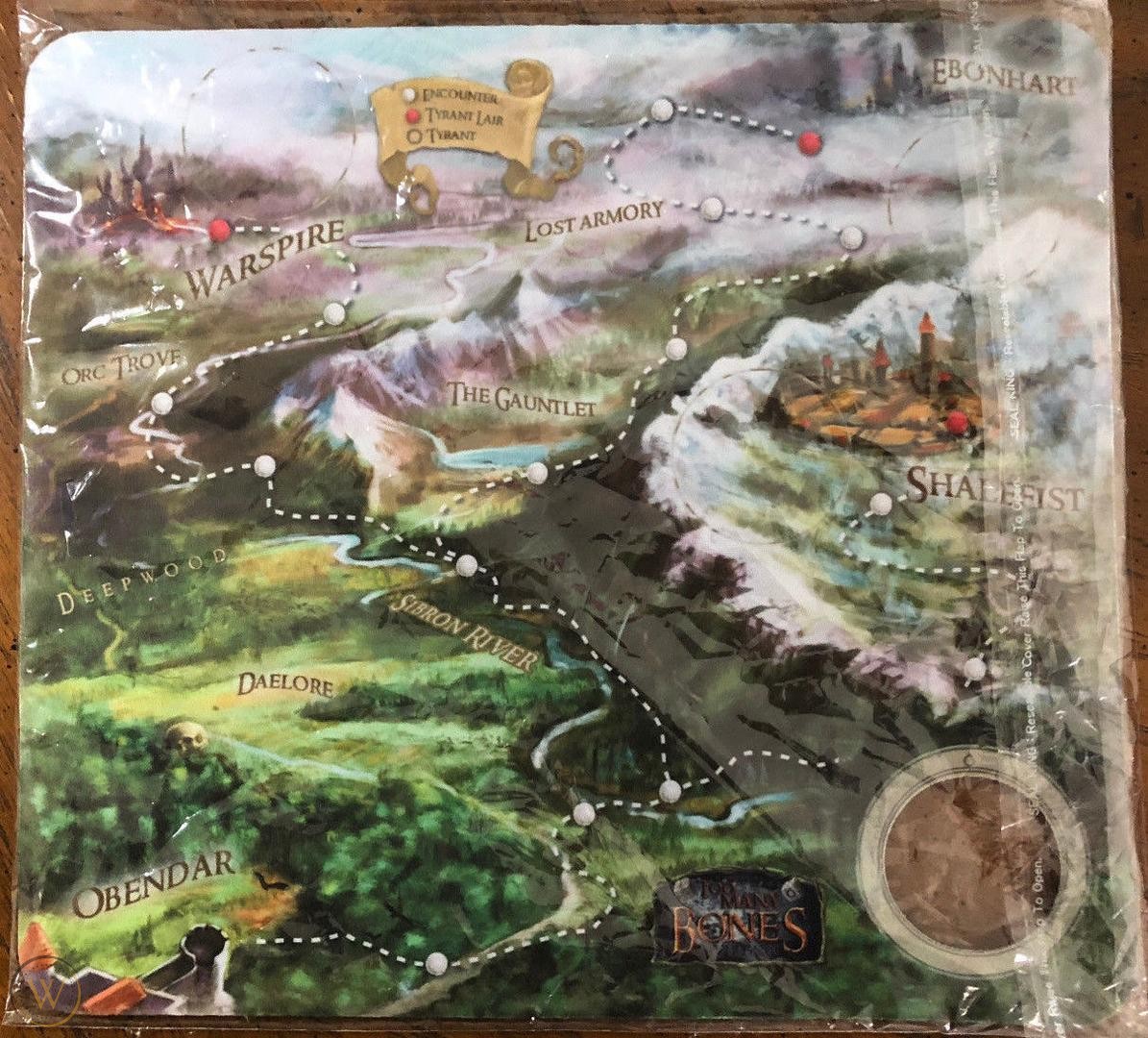 To be clear, this map is not necessary to play TMB. Drawing the Tyrant card and step-stacking completed Encounter cards showing earned progress underneath - works great. That being said, this map really gives you a FEEL for where you are headed and helps you visualize the encounters you are facing and where they are happening within the story.