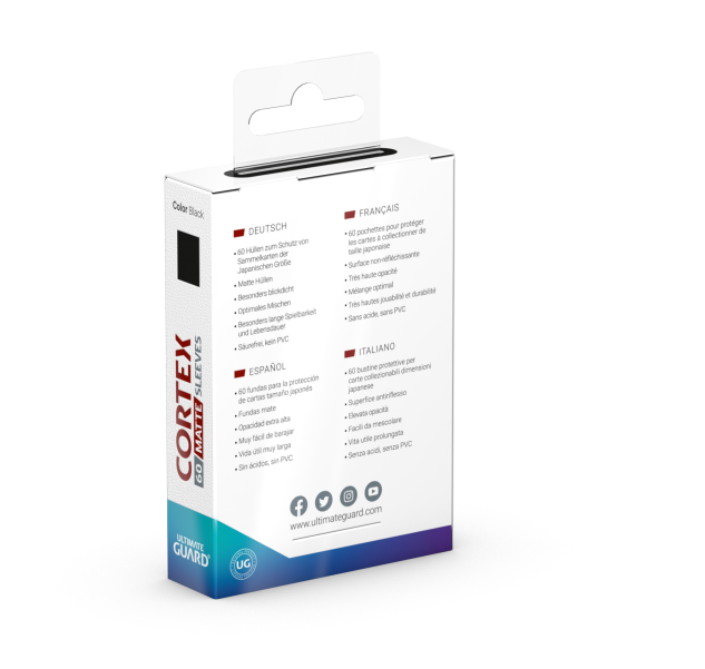 Ultimate Guard CORTEX sleeves are a perfect choice for all TCG brain athletes! Designed for your daily use, Ultimate Guard CORTEX sleeves combine precision engineering and high-quality materials with an additional focus on value. Meant as an everyday sleeve, Ultimate Guard CORTEX sleeves offer an attractive price point and also feature fully opaque backing, a perfect shuffle feel, and high-quality durability for those long gaming sessions. Ultimate Guard CORTEX sleeves will be your ideal companion, built to endure the daily grind – from kitchen table play to in-store play, and even demanding events.
