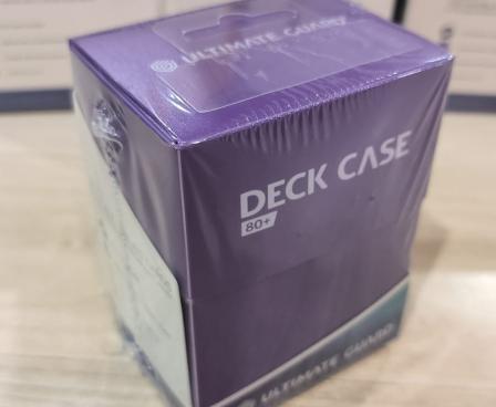 Holds up to 80 Standard gaming double sleeved cards. Self-locking lid design with write-on strip. Thumb notch for easy access to cards. 1 divider inside. (Sleeves, cards not included)