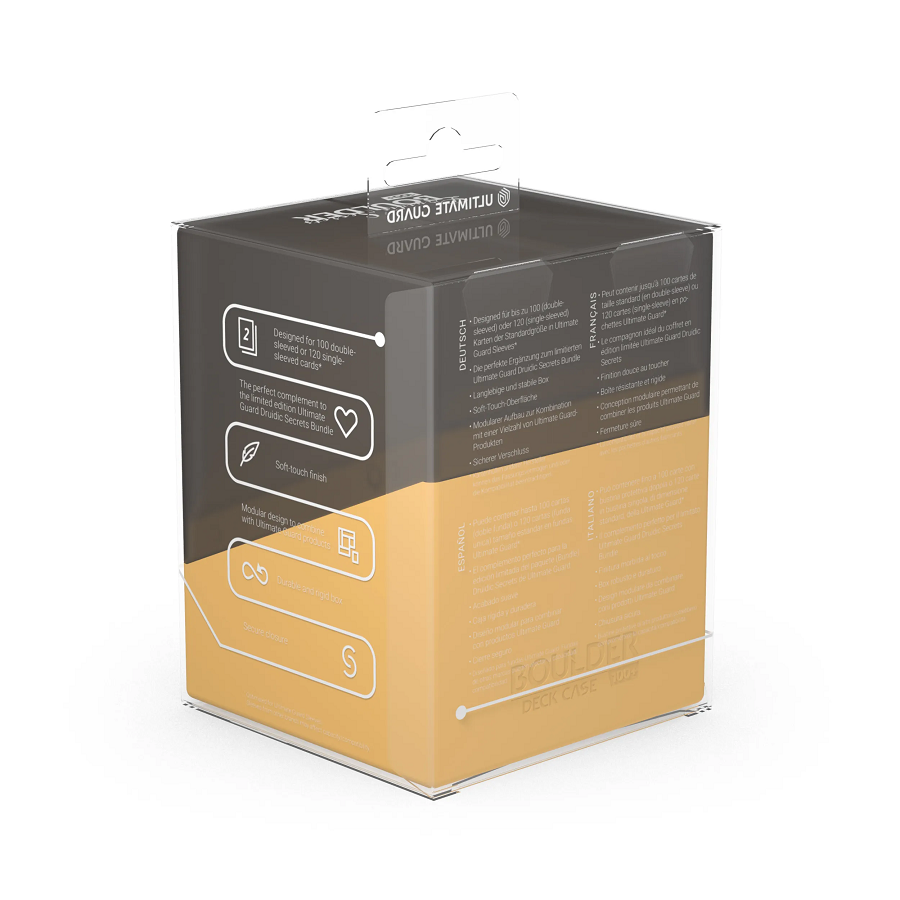 Turn your deck boxes into a mystical place! With the Druidic Secrets Boulder 100+, you not only get a reliable card deck box of the highest Ultimate Guard quality, but also a real eye-catcher with its magical ornaments - whether as a single box or a perfect addition to our Druidic Secrets Bundle. With six exclusive colors and mystical patterns, you're sure to find the deck box that's right for you. The Druidic Secrets Boulder 100+ has our famous soft-touch finish, and inside the box fit 100 double-sleeved cards.