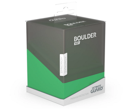 The Ultimate Guard Boulder 100+ SYNERGY is built to house and keep safe at least 100 double sleeved cards. The Boulders are available in 5 different color combinations: So whether you're a white/blue player striving for peace or you identify more with green/black bloodthirsty zombies, we're sure you'll find the perfect box for your deck.