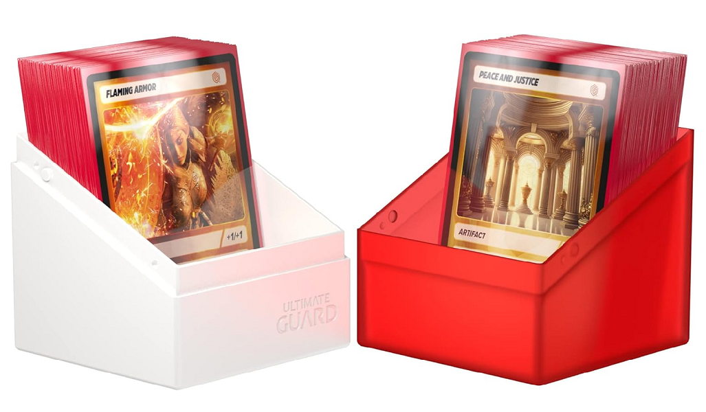 The Ultimate Guard Boulder 100+ SYNERGY is built to house and keep safe at least 100 double sleeved cards. The Boulders are available in 5 different color combinations: So whether you're a white/blue player striving for peace or you identify more with green/black bloodthirsty zombies, we're sure you'll find the perfect box for your deck.