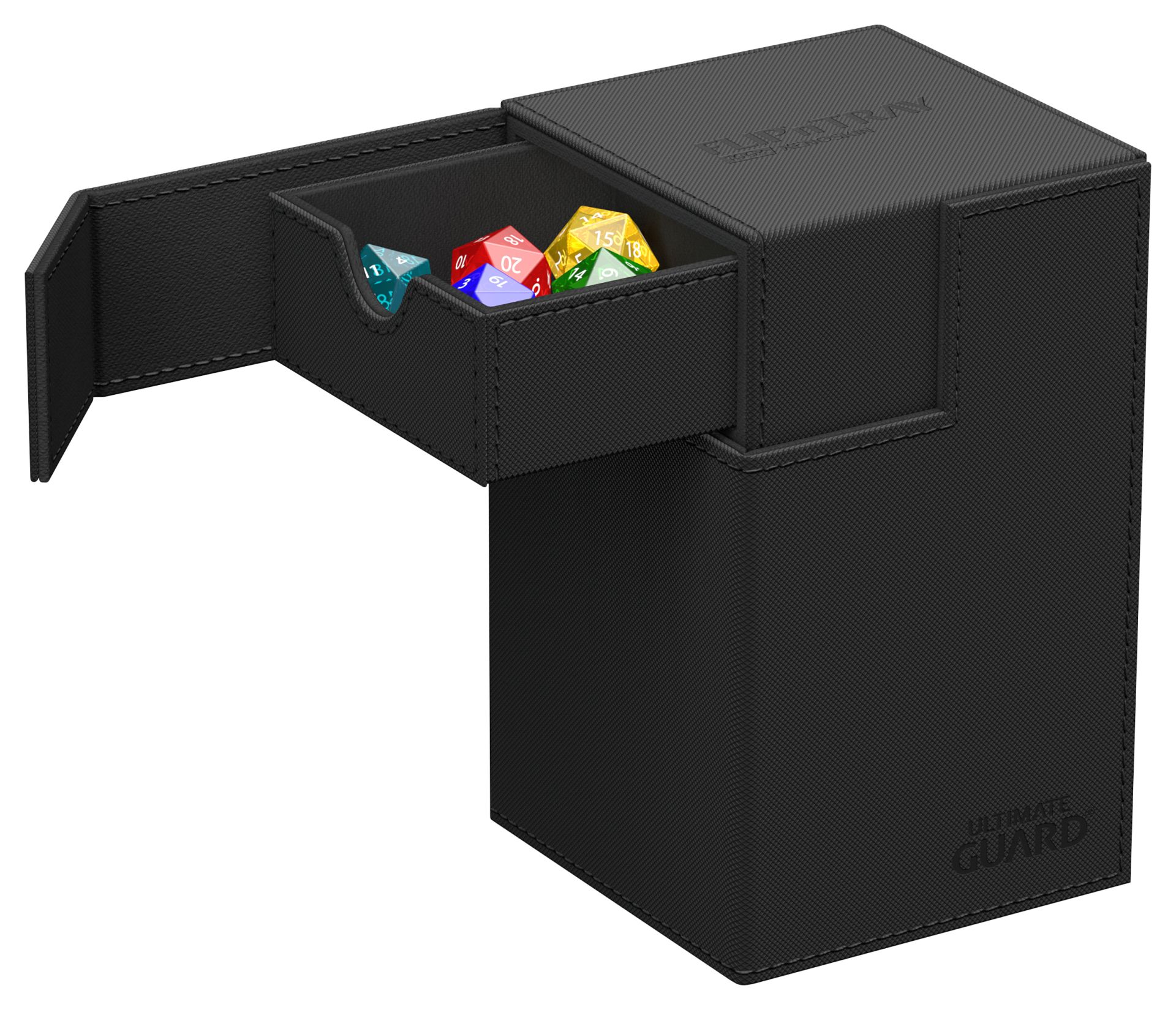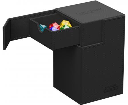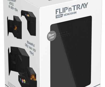 The quintessential Ultimate Guard deck box: a timeless design with strong magnetic closure, card and dice trays for safe storage of your deck, and a resistant but smooth Xenoskin surface. With room for 100 double-sleeved or 120 single-sleeved cards in standard size, the Flip’n’Tray 100+ has it all.