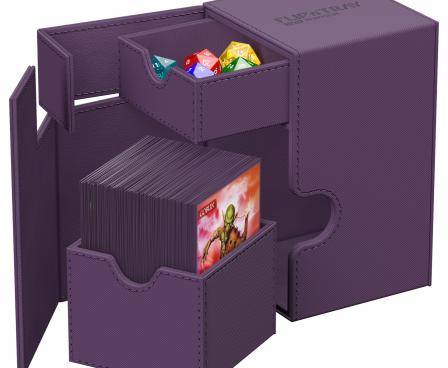 The quintessential Ultimate Guard deck box: a timeless design with strong magnetic closure, card and dice trays for safe storage of your deck, and a resistant but smooth Xenoskin surface. With room for 100 double-sleeved or 120 single-sleeved cards in standard size, the Flip’n’Tray 100+ has it all.