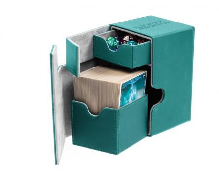 Premium XenoSkin card box with magnetic closure and card and dice trays for the protection and archival safe storage of 100 double-sleeved cards in standard size (e.g. Magic: The Gathering, Pokémon and others).