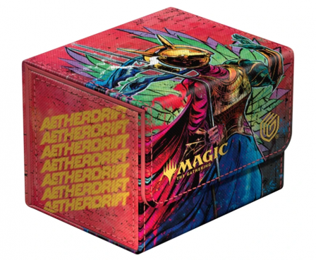The Sidewinder 100+, made of durable Xenoskin material, holds up to 100 (double-sleeved) or 120 (single-sleeved) cards and is the perfect deck box for Commander/EDH decks. Printed in full color with officially licensed artworks from Magic: The Gathering's Aetherdrift, Ultimate Guard's Sidewinder deck boxes with their strong magnetic closure and quality microfiber inner lining are a safe and reliable storage place for MTG decks and individual trading cards.