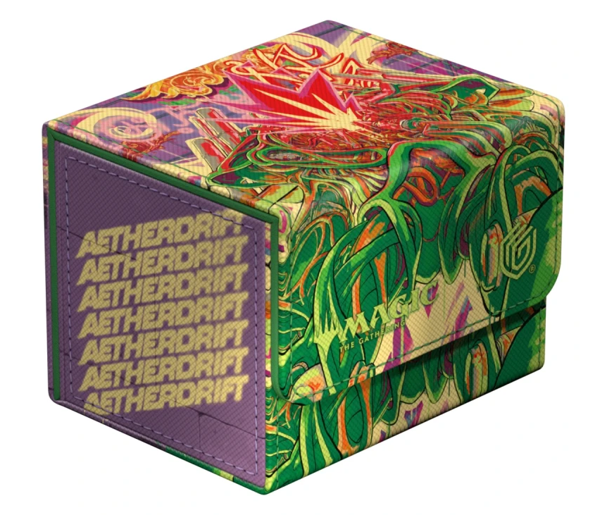 The Sidewinder 100+, made of durable Xenoskin material, holds up to 100 (double-sleeved) or 120 (single-sleeved) cards and is the perfect deck box for Commander/EDH decks. Printed in full color with officially licensed artworks from Magic: The Gathering's Aetherdrift, Ultimate Guard's Sidewinder deck boxes with their strong magnetic closure and quality microfiber inner lining are a safe and reliable storage place for MTG decks and individual trading cards.