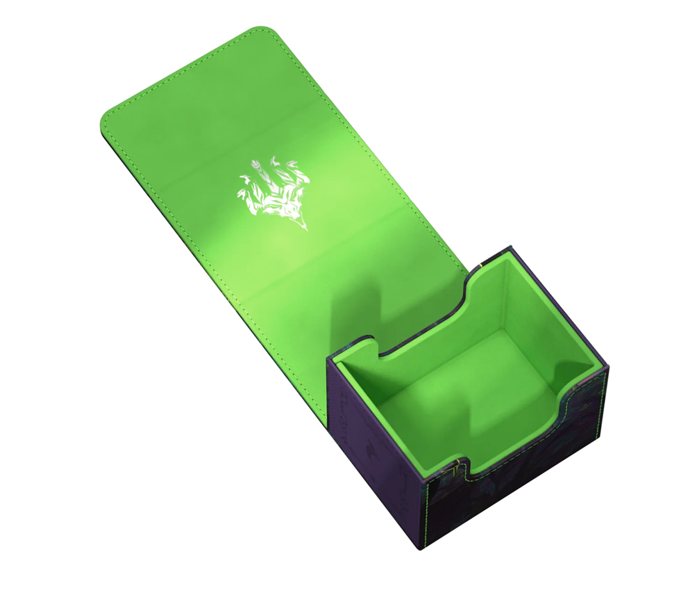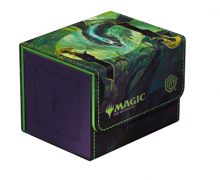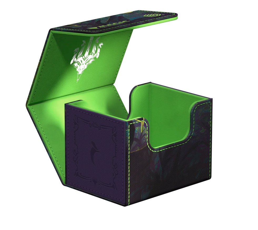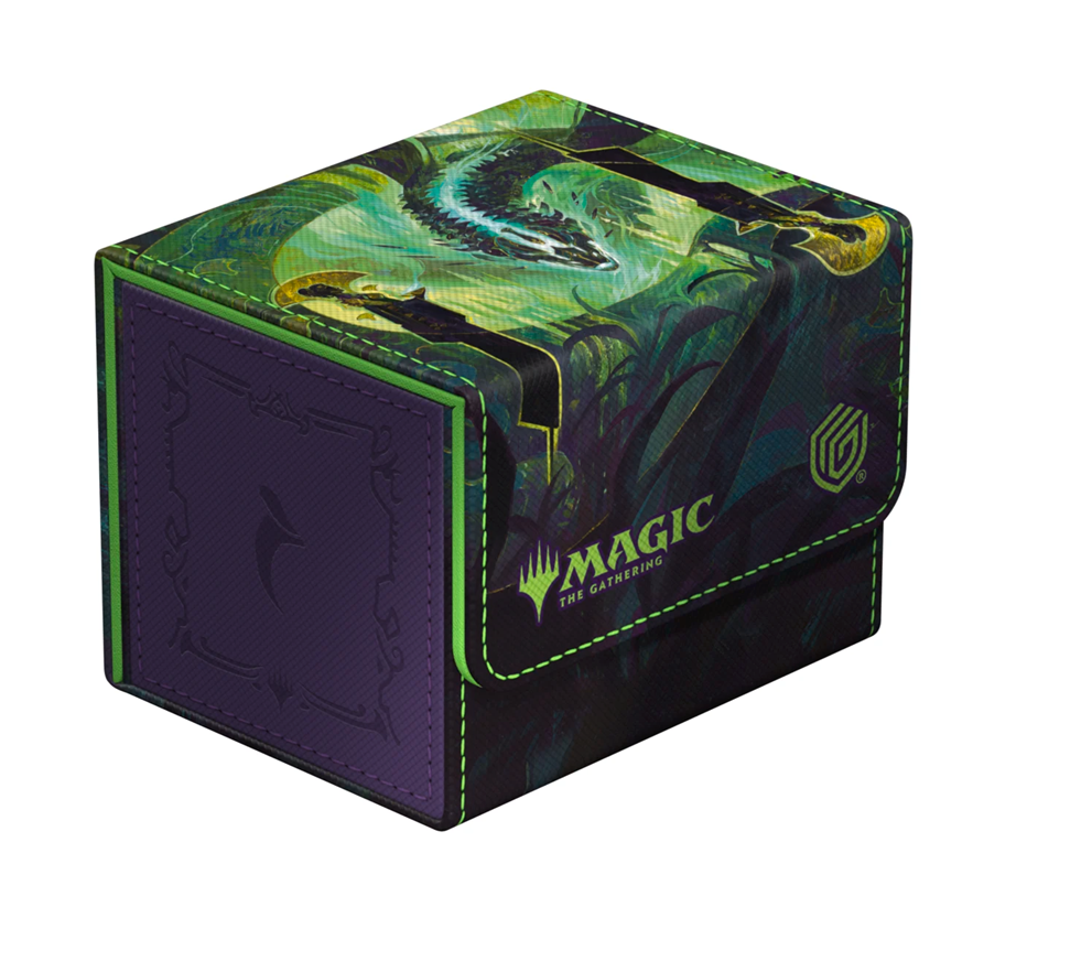 The Special Edition Ghostfire Sidewinder 100+ Xenoskin, with a spectacular shimmering embossing on the microfiber interior, is printed with officially licensed artworks from Magic: The Gathering’s Tarkir: Dragonstorm set. This high-quality deck box, made from durable Xenoskin material with a reliable magnetic closure, holds up to 100 double-sleeved or 120 single-sleeved cards.