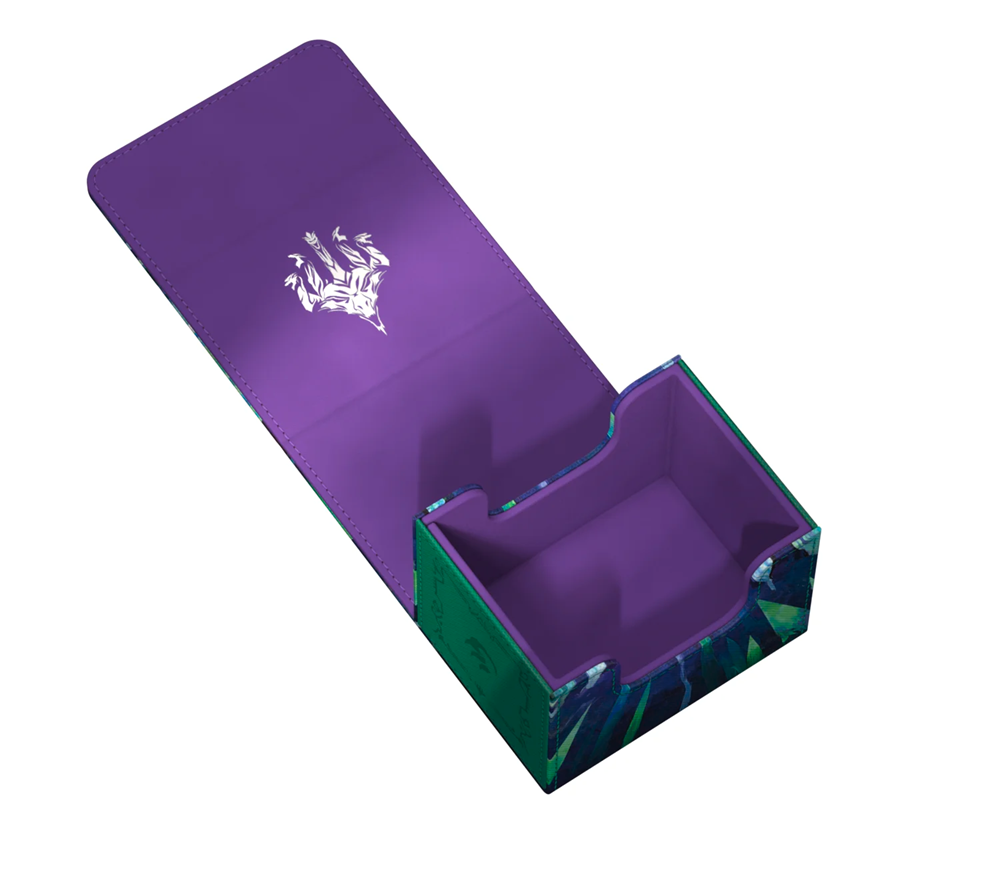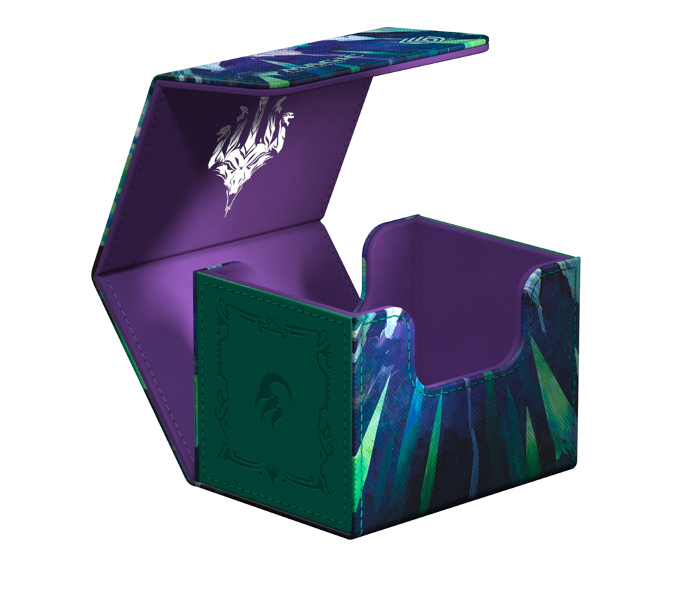 The Special Edition Ghostfire Sidewinder 100+ Xenoskin, with a spectacular shimmering embossing on the microfiber interior, is printed with officially licensed artworks from Magic: The Gathering’s Tarkir: Dragonstorm set. This high-quality deck box, made from durable Xenoskin material with a reliable magnetic closure, holds up to 100 double-sleeved or 120 single-sleeved cards.
