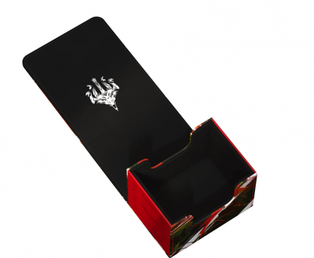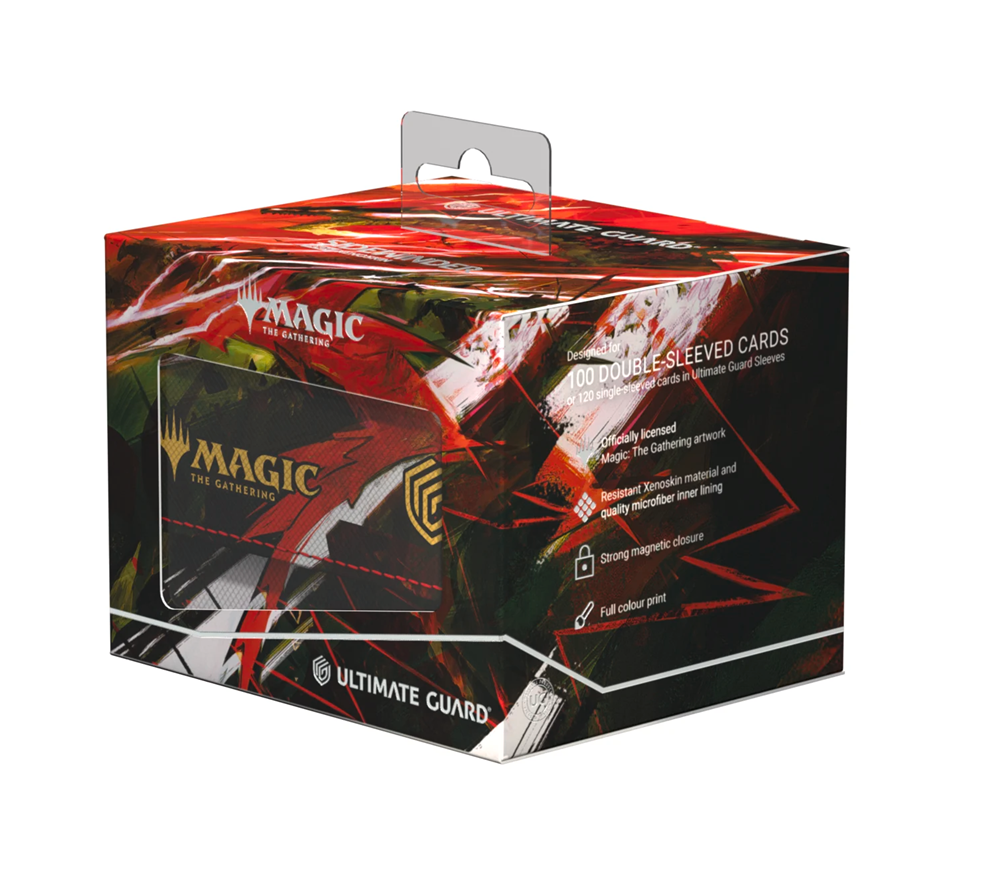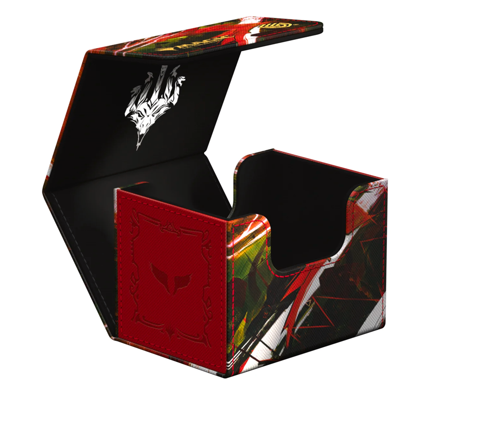 The Special Edition Ghostfire Sidewinder 100+ Xenoskin, with a spectacular shimmering embossing on the microfiber interior, is printed with officially licensed artworks from Magic: The Gathering’s Tarkir: Dragonstorm set. This high-quality deck box, made from durable Xenoskin material with a reliable magnetic closure, holds up to 100 double-sleeved or 120 single-sleeved cards.