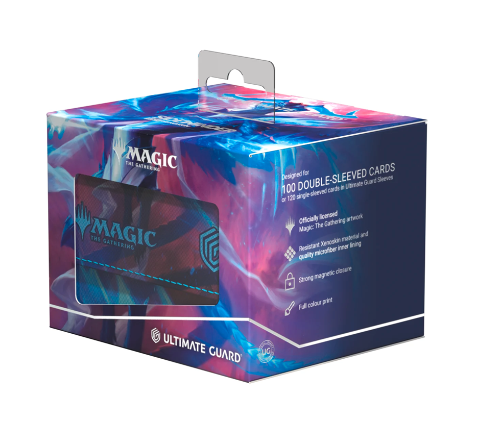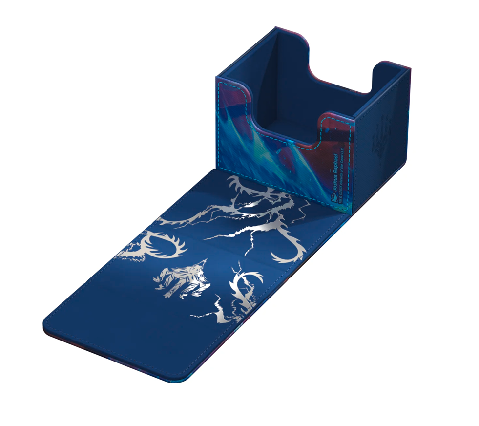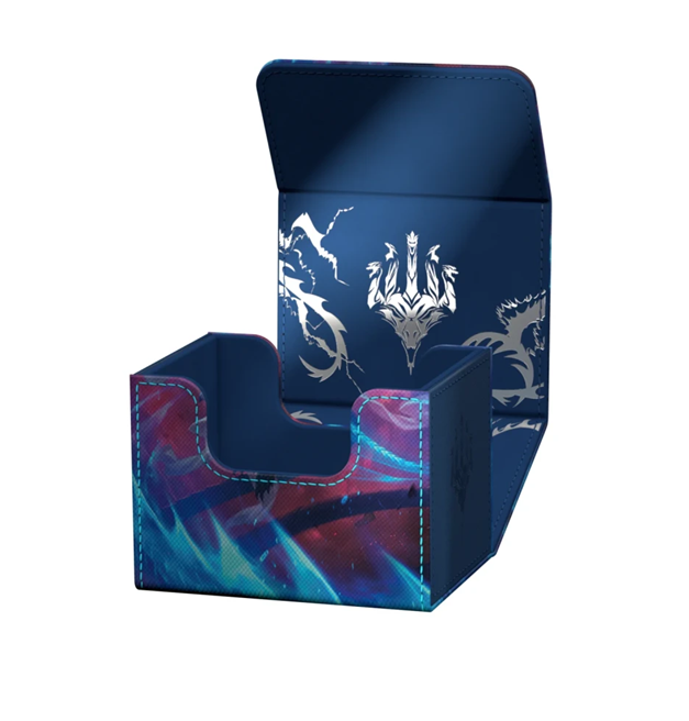 The Special Edition Ghostfire Sidewinder 100+ Xenoskin, with a spectacular shimmering embossing on the microfiber interior, is printed with officially licensed artworks from Magic: The Gathering’s Tarkir: Dragonstorm set. This high-quality deck box, made from durable Xenoskin material with a reliable magnetic closure, holds up to 100 double-sleeved or 120 single-sleeved cards.