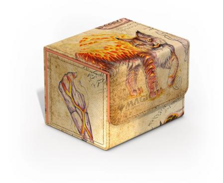 Explore the ferocious side of Bloomburrow! Our Sidewinder 100+ are made of full color printed, resistant Xenoskin material and feature officially licensed Magic: The Gathering artworks of the epic Calamity Beasts and other predators from Bloomburrow in the beautiful style of an old encyclopedia. The deck boxes hold up to 100 (double-sleeved) or 120 (single-sleeved) cards. They are the perfect choice for safely storing cards and decks from all popular TCGs thanks to the strong magnetic closure and the microfiber inner lining.