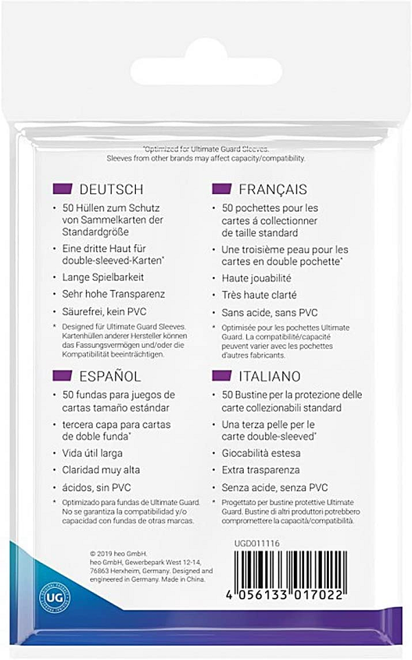 *Ultimate Guard Supreme UX 3rd Skin Sleeves Standard Size Transparent (50)