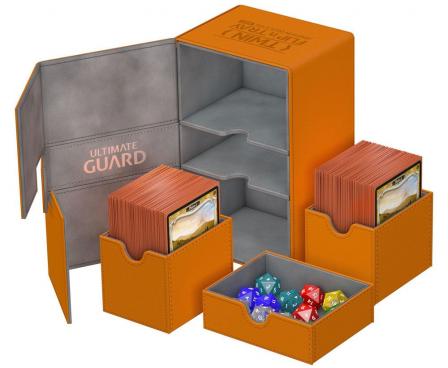 Premium XenoSkin™ card box with magnetic closure and card and dice trays for the protection and archival safe storage of 160 double-sleeved cards in standard size (e.g. Magic: The Gathering™, Pokémon™ and others).*