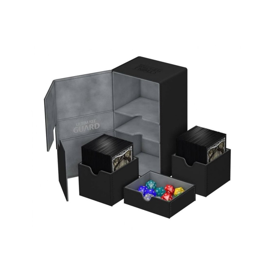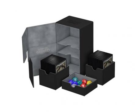 Premium XenoSkin card box with magnetic closure and card and dice trays for the protection and archival safe storage of 200 double-sleeved cards in standard size (e.g. Magic: The Gathering, Pokémon and others).