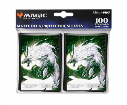 The Magic The Gathering FINAL FANTASY100ct Deck Protector sleeves feature full-color artwork and are made with our proprietary ChromaFusion Technology to prevent peeling. Archival-safe polypropylene materials ensure you can sleeve your cards with confidence. Sized for standard size trading cards measuring 2.5 in. x 3.5 in. The matte finish offers a glare-free, camera-ready play experience!