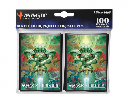 The Magic The Gathering FINAL FANTASY100ct Deck Protector sleeves feature full-color artwork and are made with our proprietary ChromaFusion Technology to prevent peeling. Archival-safe polypropylene materials ensure you can sleeve your cards with confidence. Sized for standard size trading cards measuring 2.5 in. x 3.5 in. The matte finish offers a glare-free, camera-ready play experience!