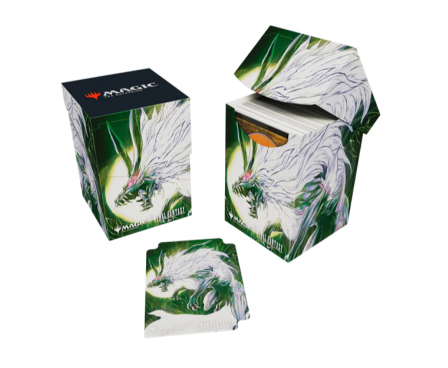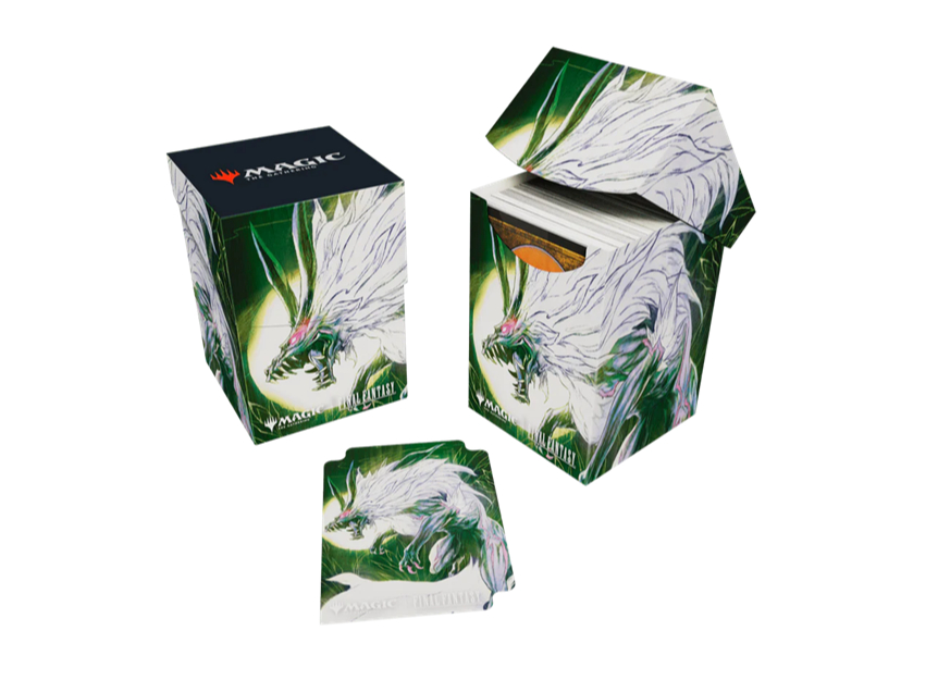 The Magic The Gathering FINAL FANTASY 100+ Deck Box card storage container features vibrant, full-color artwork and includes one deck divider. Made with archival-safe, non-PVC, rigid polypropylene materials, you can store up to 100 double-sleeved cards with confidence. The self-locking lid keeps your cards securely stored when not in use, while also offering easy access. Sized for standard-size trading cards.