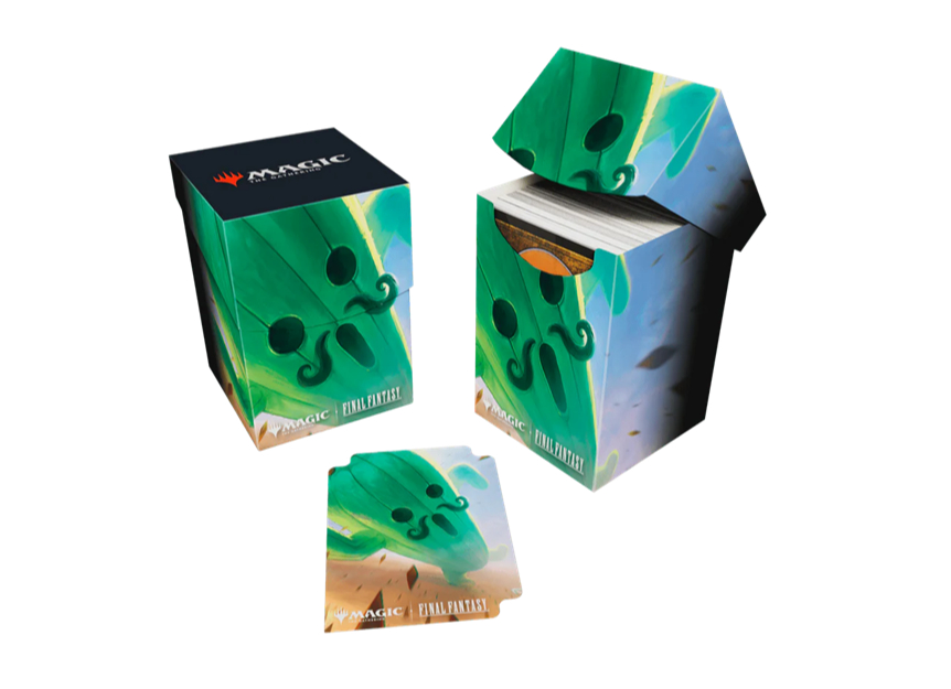 The Magic The Gathering FINAL FANTASY 100+ Deck Box card storage container features vibrant, full-color artwork and includes one deck divider. Made with archival-safe, non-PVC, rigid polypropylene materials, you can store up to 100 double-sleeved cards with confidence. The self-locking lid keeps your cards securely stored when not in use, while also offering easy access. Sized for standard-size trading cards.