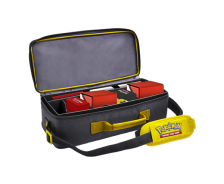 The Pikachu Deluxe Gaming Trove by Ultra PRO features vibrant artwork and maximum utility for every Pokémon Trading Card Game player or collector! The adjustable padded shoulder strap extends to up to 60 in. with a briefcase handle option. The Deluxe Gaming Trove provides customizable storage in a durable fabric shell. Each case includes five modular inserts and is specifically designed to store a playmat and several Ultra PRO Deck Boxes. In addition to the iconic Pokémon artwork, the custom zipper pull tab features the Electric Energy symbol. The Pikachu Deluxe Gaming Trove is the ultimate Pokémon TCG companion.