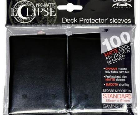 The Eclipse Pro-Matte Deck Protector sleeves completely hides card backs with an added layer of opaque black material