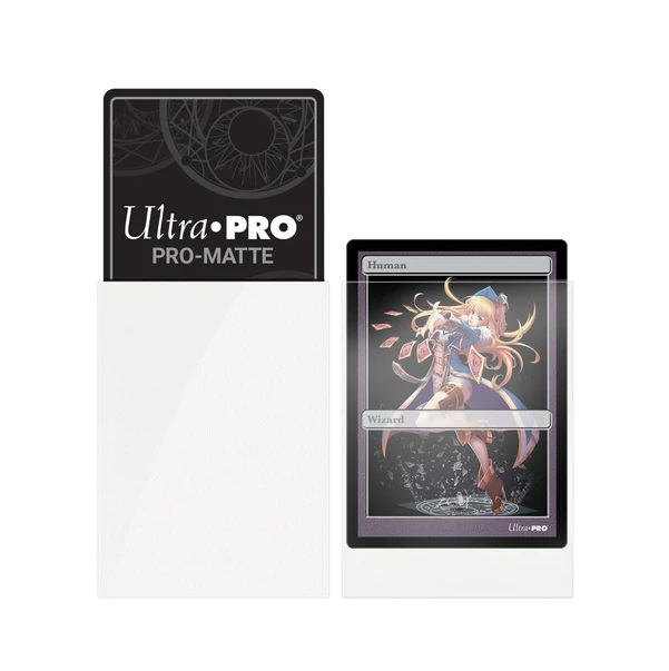 Protect your valuable trading card game cards with Ultra PRO's PRO-Matte Deck Protector sleeves. Made with archival-safe (non-PVC) materials, these sleeves keep your cards from damage during gameplay and make mash shuffling a breeze. Marked with Ultra PRO's authenticity hologram seal, these sleeves are made to fit small (62mm X 89mm) sized cards. As with all PRO-Matte style Deck Protector sleeves, the clear side uses non-glare matte material for a softer feel, easier shuffle, and reduced glare for better on-camera presentation. Each pack comes with 60 sleeves and is designed to fit small-sized gaming cards such as Yu-Gi-Oh! Trading Card Game cards.