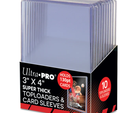 Ten (10) 130pt Toploaders and ten (10) Sleeves for Thick Cards included