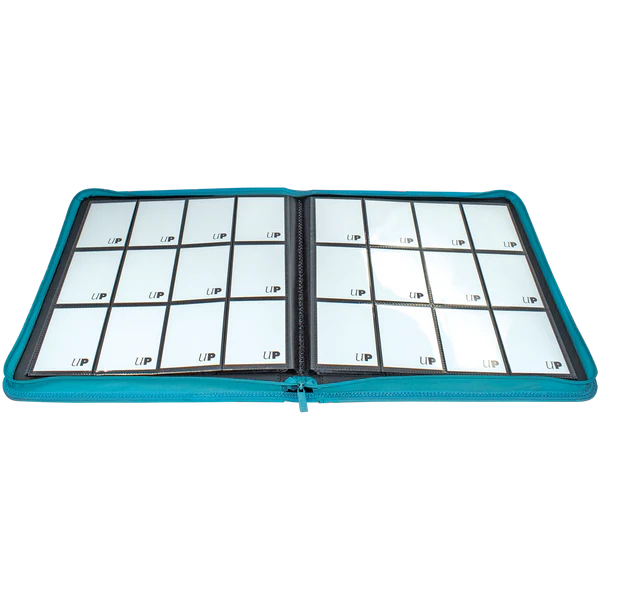 The Vivid 12-Pocket Zippered PRO-Binders are designed for collecting and organizing playsets of your favorite trading cards. Each binder features a padded leatherette cover with a matching zipper closure and pull tab. After unzipping the binder, you'll find twenty 12-pocket pages sized for standard trading cards in side-loading pockets, allowing you to store up to 480 cards in Deck Protector sleeves. Pages feature a low-friction black backing, creating a separation between the front and back pockets as well as providing cards a classic framed look. Every PRO-Binder is made with acid-free, non-PVC materials to ensure your cards are protected and preserved. The 12-Pocket Playset Premium PRO-Binders are available in 8 colors: Blue, Green, Purple, Red, Light Blue, Yellow, Teal, and Black.