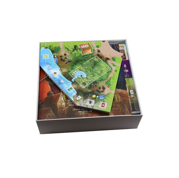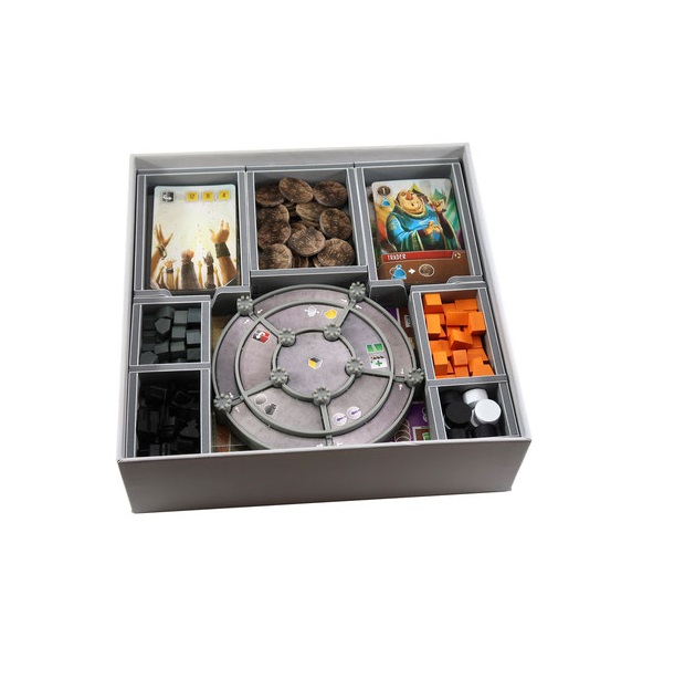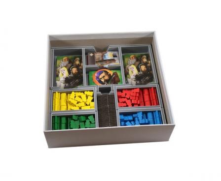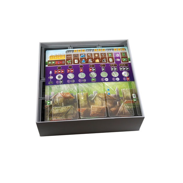Insert compatible with Viscounts of the West Kingdom®. The design provides both efficient storage and improved game play. Many of the trays can be utilised during the game, and they greatly aid set-up and clear-away times.