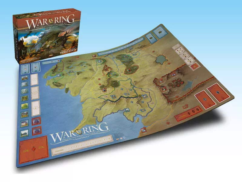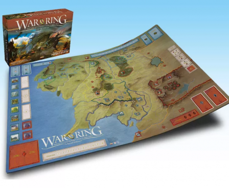 The giant neoprene playing mat (128 x 88 cm size) offers an enlarged playing area, 50% larger than the normal board, featuring the amazing John Howe’s depiction of Middle-earth created exclusively for War of the Ring.