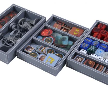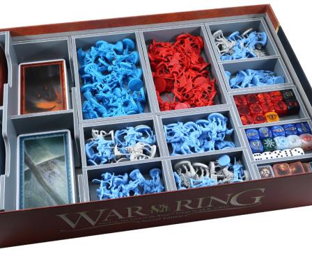 Insert compatible with War of the Ring®: Second Edition, and the Lords of Middle-Earth®, and Warriors of Middle-Earth® expansions. The design provides both efficient storage and improved game play. Many of the trays can be utilised during the game, and they greatly aid set-up and clear-away times. The board and rule books act as a lid on top of the trays.