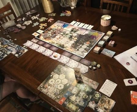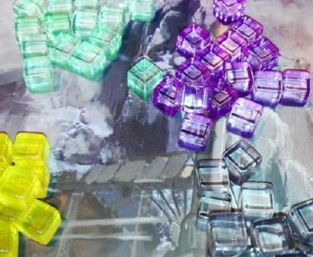 Anachrony features a unique two-tiered worker placement system. To travel to the Capital or venture out to the devastated areas for resources, players need not only various Specialists (Engineers, Scientists, Administrators, and Geniuses) but also Exosuits to protect and enhance them — and both are in short supply.