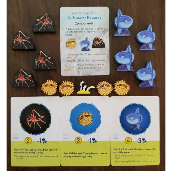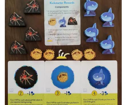 This mini expansion, which is exclusive to the Kickstarter backers, introduces three different animals to the game: the Pufferfish, the Sunfish and the Japanese Spider Crab. Each allows the player to gain Victory Points in unique ways: