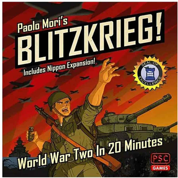 Recreate World War Two in 20 minutes! The perfect wargame for non-wargamers, Blitzkrieg! allows two players to battle across the War’s most iconic theatres, winning key campaigns and building military might. Players draw army tokens from a bag to determine their starting forces and to replenish their losses. Rather than ‘fighting’ battles with dice or cards, players allocate their military resources to each theatre’s campaigns, winning victory points, further resources, special weapons, and strategic advantages as they play. Refight World War Two several times in one evening! Includes Solo mode by Dávid Turczi.