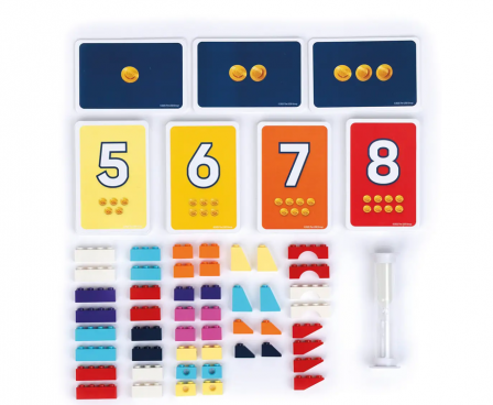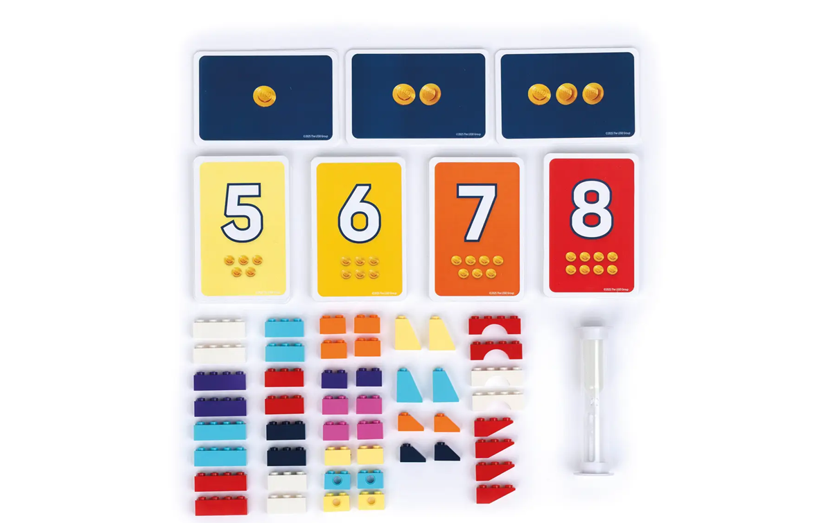 In Brick Like This!, teams of two, one Instructor and one Builder, are tasked with building a shape out of LEGO bricks. The Instructor will tell the Builder how to build a shape on a Shape Card that only the Instructor can see. All teams play at the same time, racing to build their shapes the fastest. The winner is the team with the most points at the end of six rounds!
