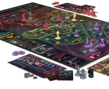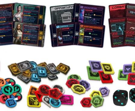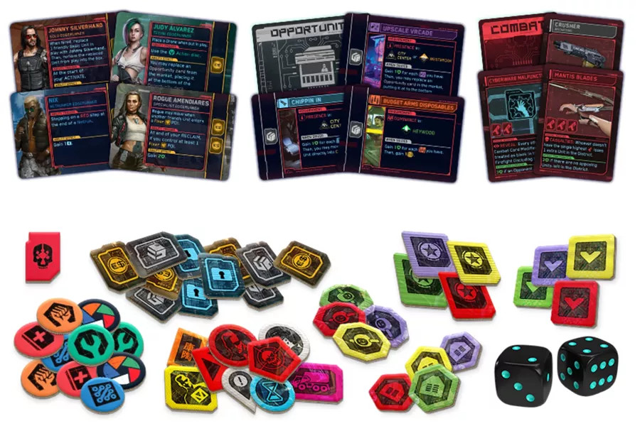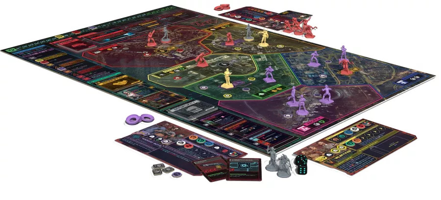Cyberpunk 2077: Gangs of Night City is a big box strategy game with miniatures in which gangs fight for control of a city, with the city also being a living part of the game.