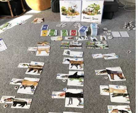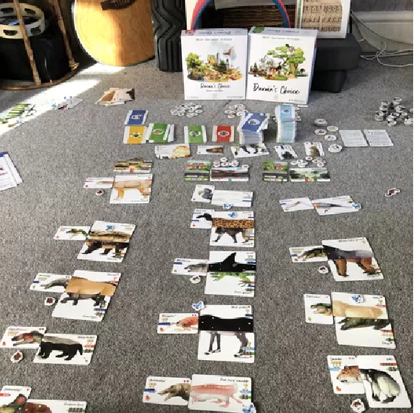 Darwin's Choice is a competitive card game in which players create their own animal species from more than 230 animal cards. These animal species will be placed in biomes that differ strongly in their requirements and food availability. The highest possible adaptation of animal species to their biomes not only ensures their survival but is also rewarded with the coveted Darwin points. In addition to a high adaptation the species with the highest competitive strength are also awarded across all zones.