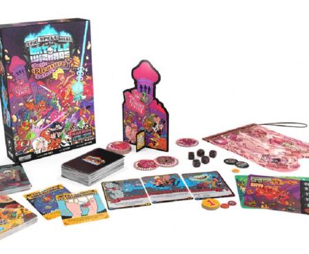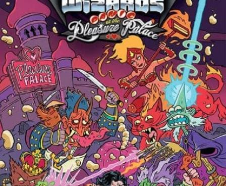 Epic Spell Wars of the Battle Wizards: Panic at the Pleasure Palace, the fourth game in the Epic Spell Wars series, takes the trademark humor-filled, mature gameplay and artwork to a new level for 2-6 players. Magically transmitted diseases (MTDs) are a powerful addition to the proceedings, leading wizards to suffer Crotch Krakens, Genital Harpies, and Gorgonorrhea, among other enchanted afflictions. MTDs also give players glyphs that lead to spells that are more epic than ever. In addition, players vie for control of the standee, which protects them from the MTDs that might come their way.